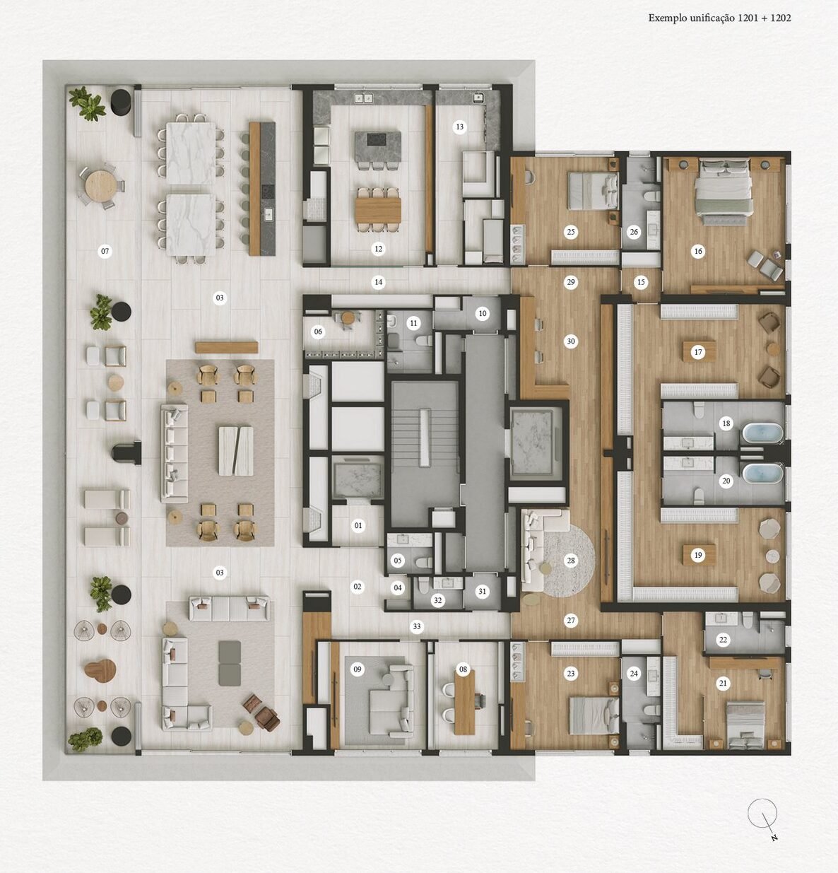 Além disso, há a opção de apartamentos de andar inteiro, com até 725 m², 5 suítes e 8 vagas, proporcionando uma experiência de moradia ainda mais exclusiva e espaçosa. Todas as unidades contam com diferenciais como lareira a lenha, varanda com 2,85 metros de profundidade e suítes master que podem chegar a 107 m².