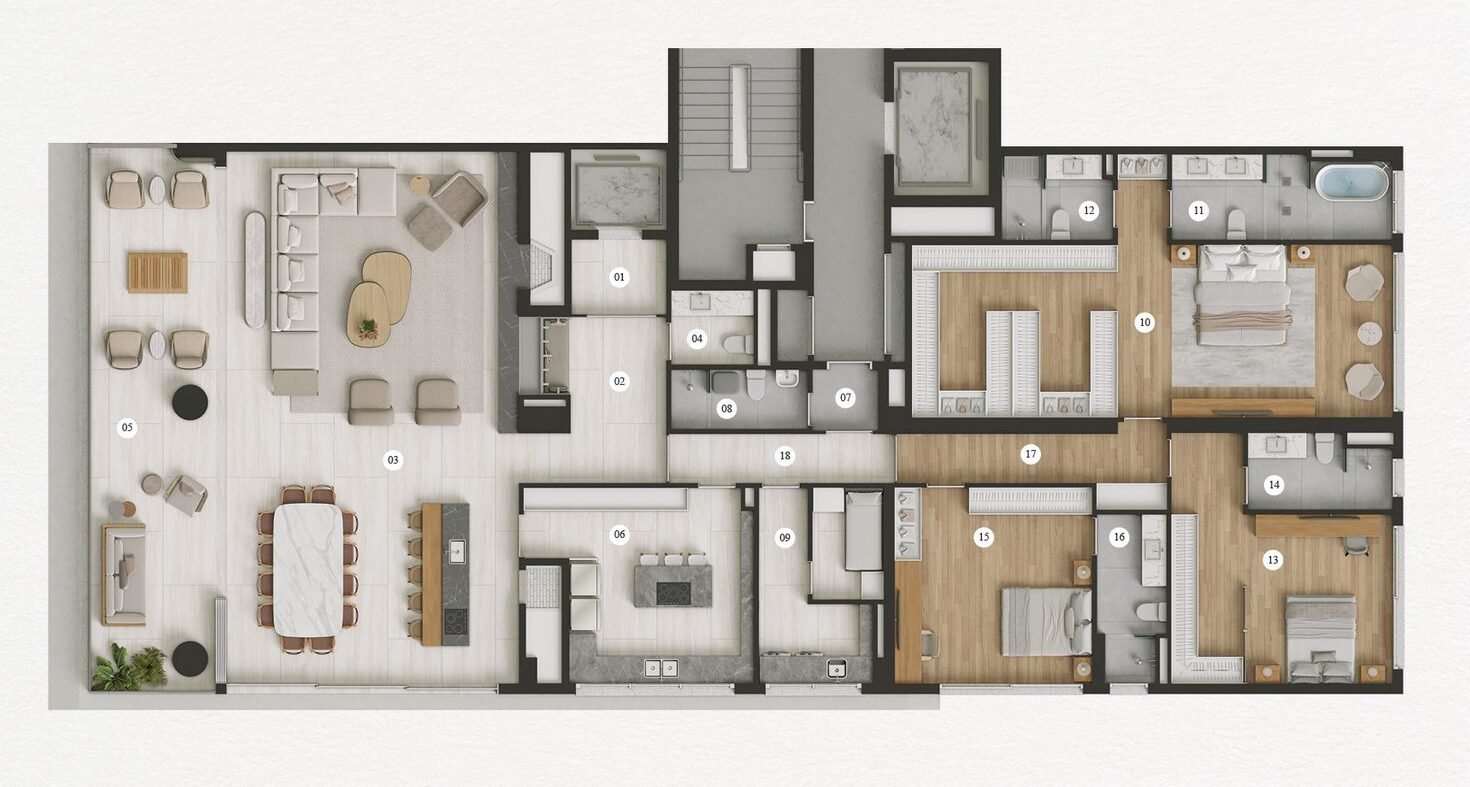 Em primeiro lugar os apartamentos do Barão 428 foram projetados para oferecer o máximo de conforto e flexibilidade. Com plantas que variam de 330 m² a 725 m². Dessa forma o empreendimento oferece opções que se adaptam às necessidades de diferentes perfis de moradores. Ou seja, no Barão 428 Woss, você encontra luxo e espaço.