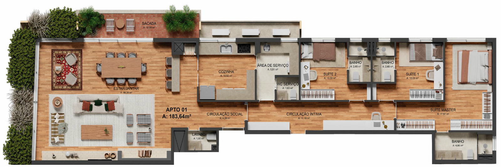 Tipo 01 – Sacada Lateral184 m²32 ou 3