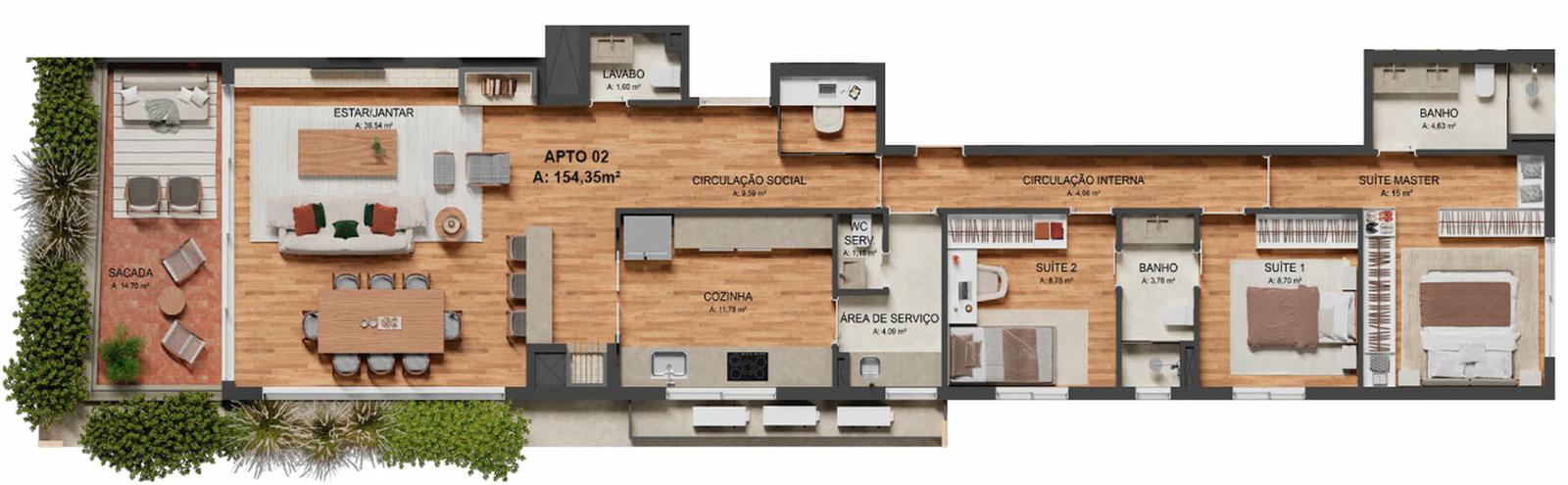 Tipo 02 – Sacada Frontal154 m²32