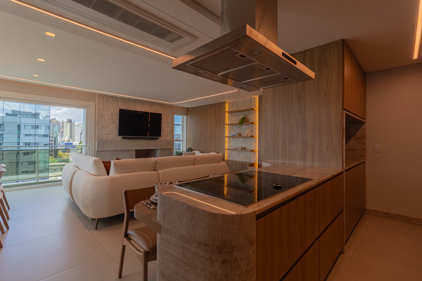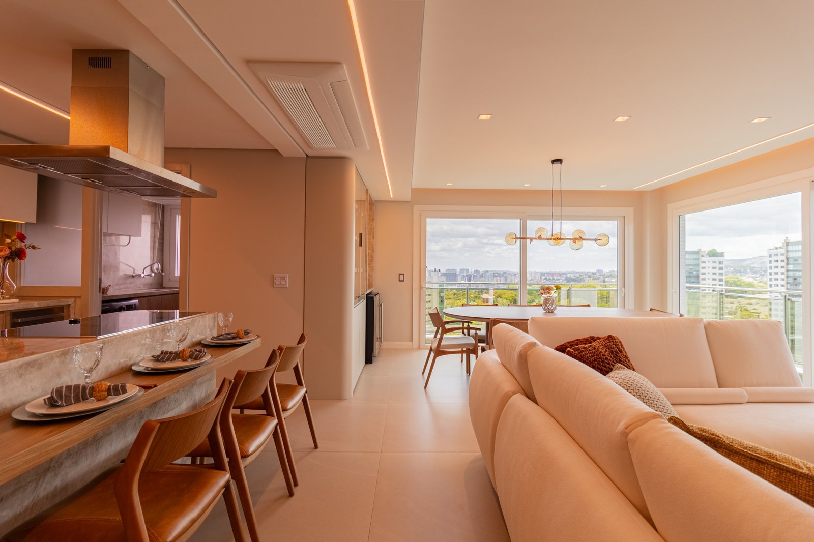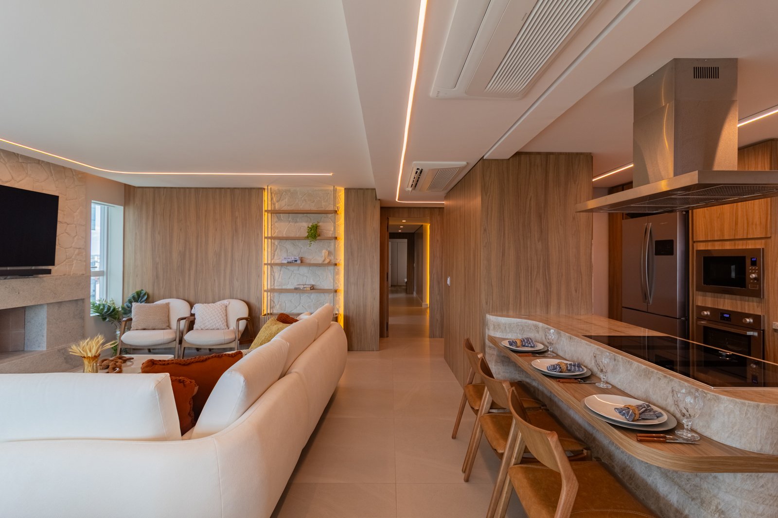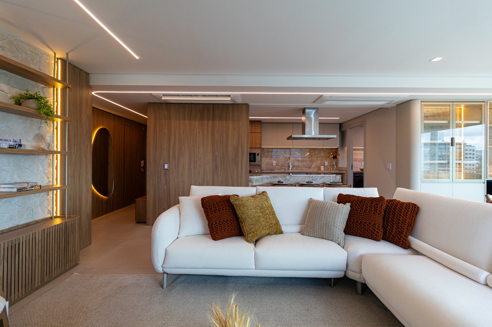 Desde o início, foi priorizada uma atmosfera clean, funcional e atemporal, características cada vez mais valorizadas em apartamentos de alto padrão.