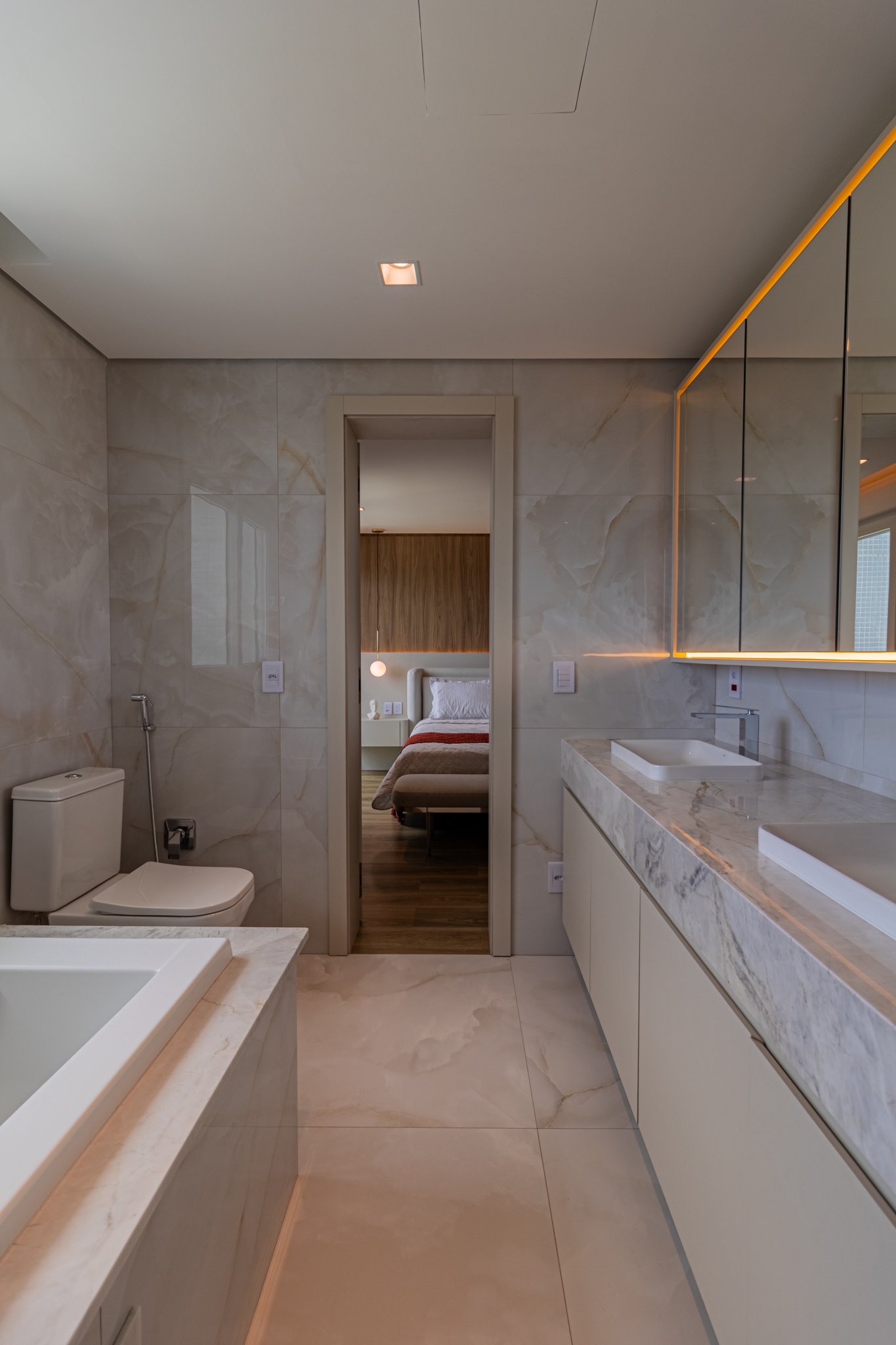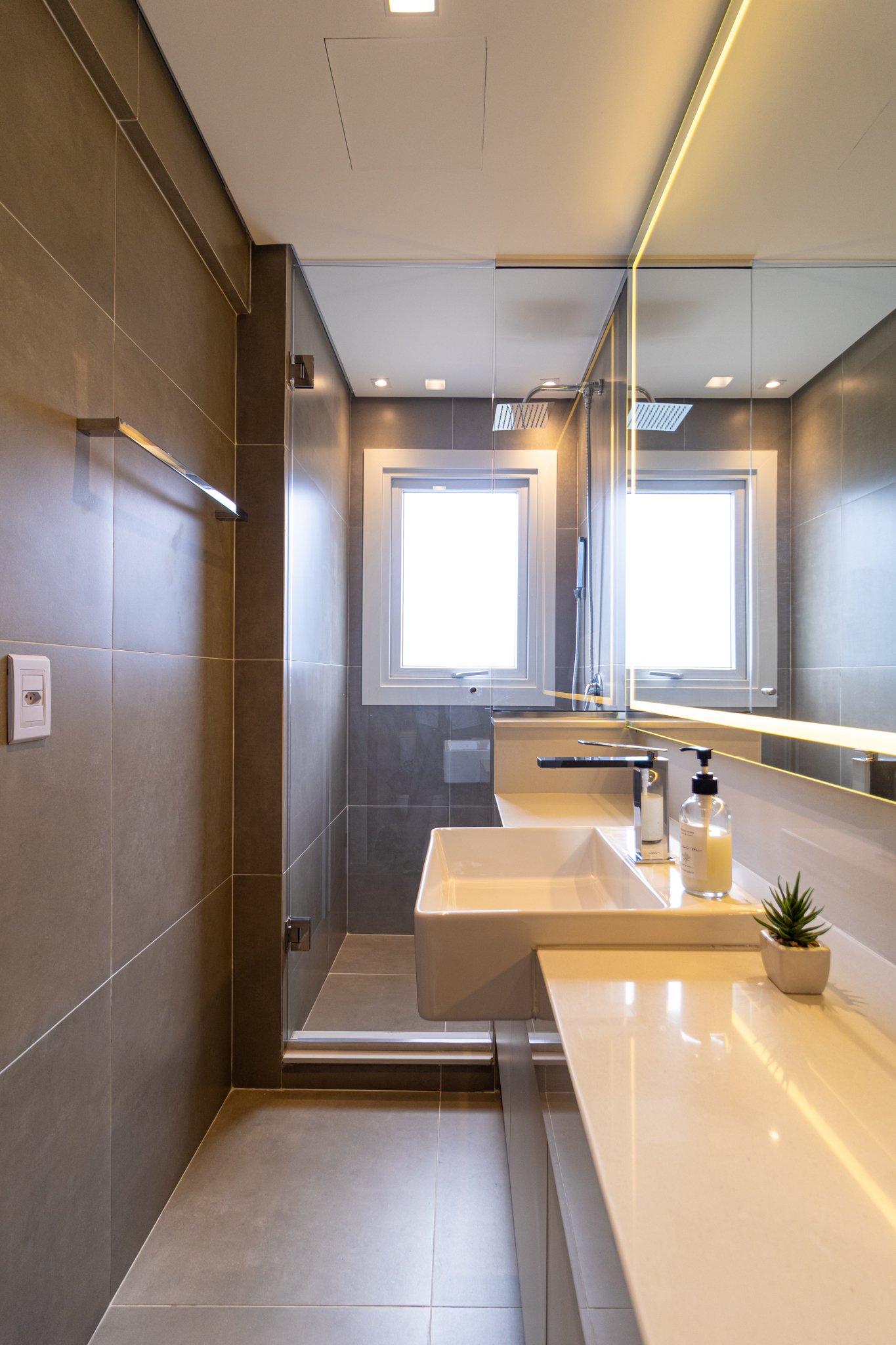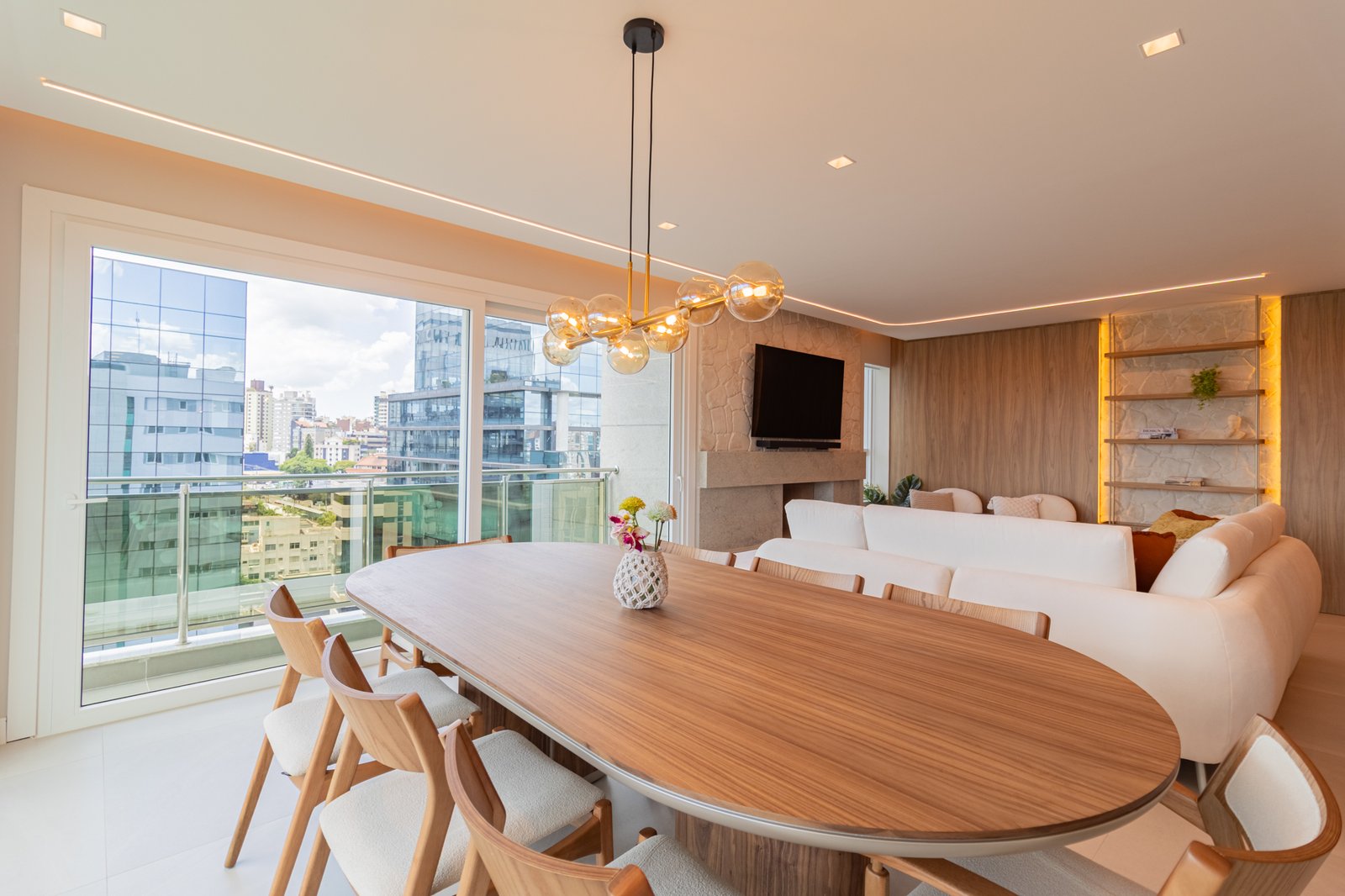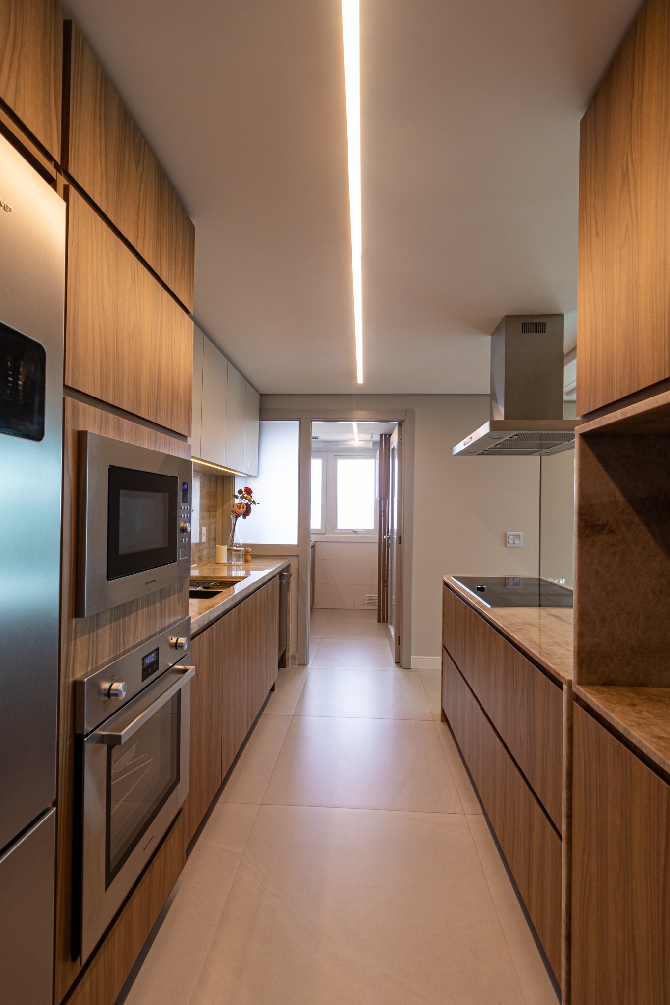 Desde o início, foi priorizada uma atmosfera clean, funcional e atemporal, características cada vez mais valorizadas em apartamentos de alto padrão.