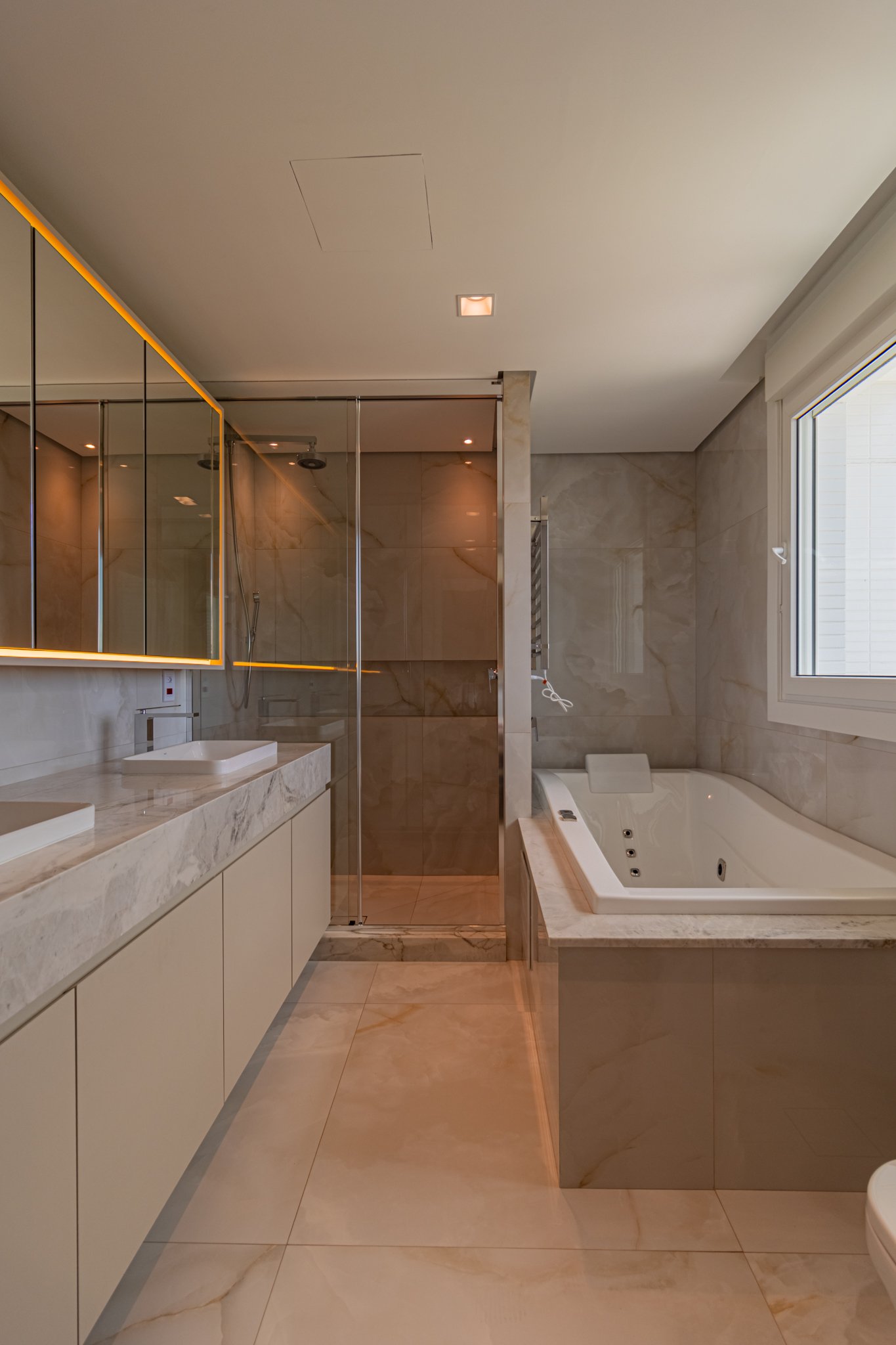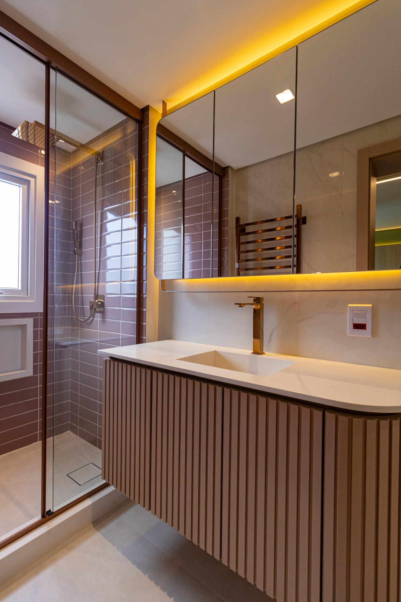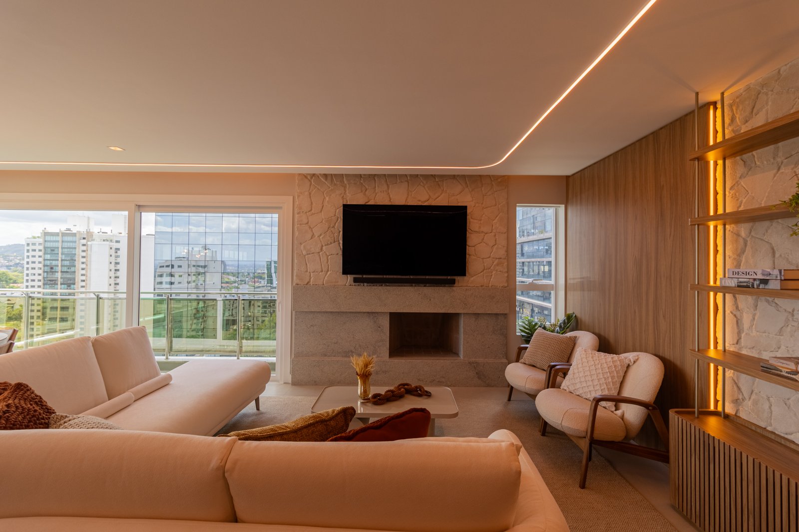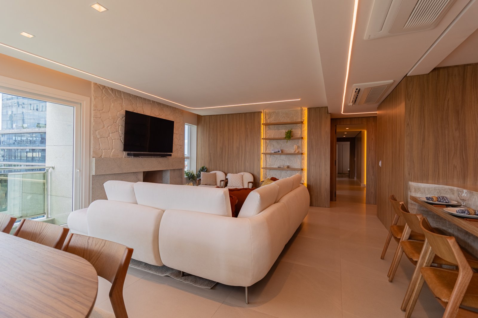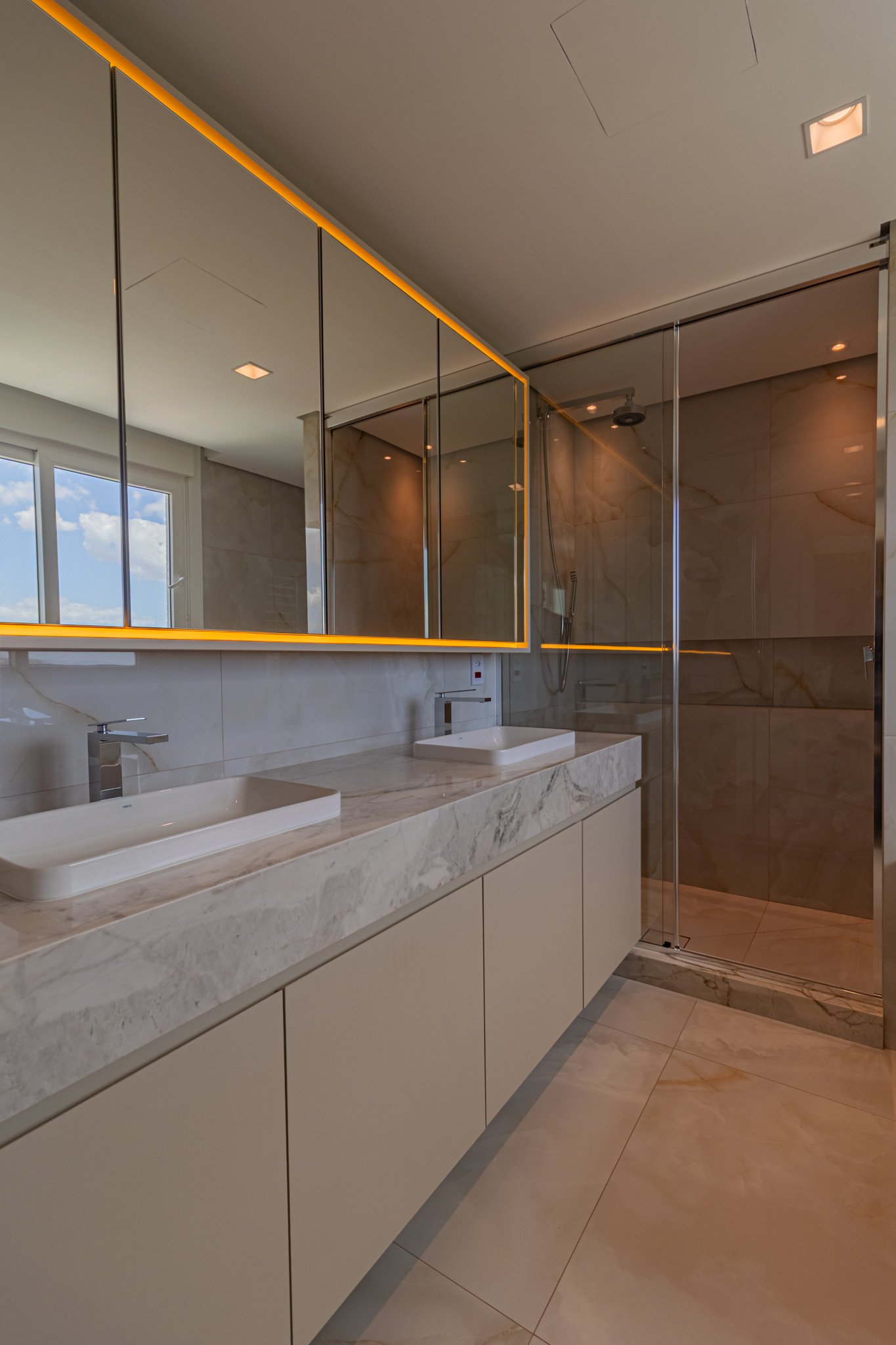 Desde o início, foi priorizada uma atmosfera clean, funcional e atemporal, características cada vez mais valorizadas em apartamentos de alto padrão.