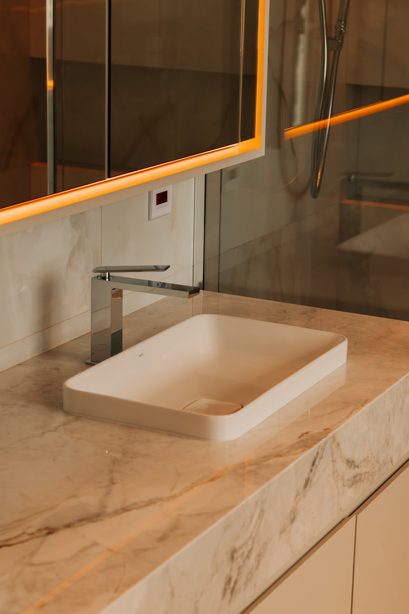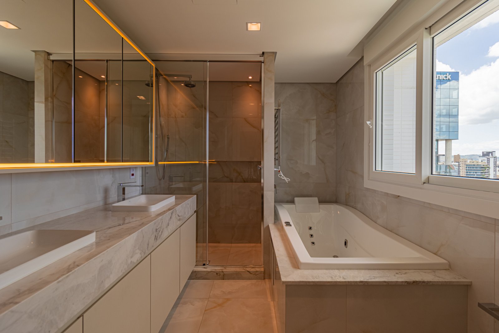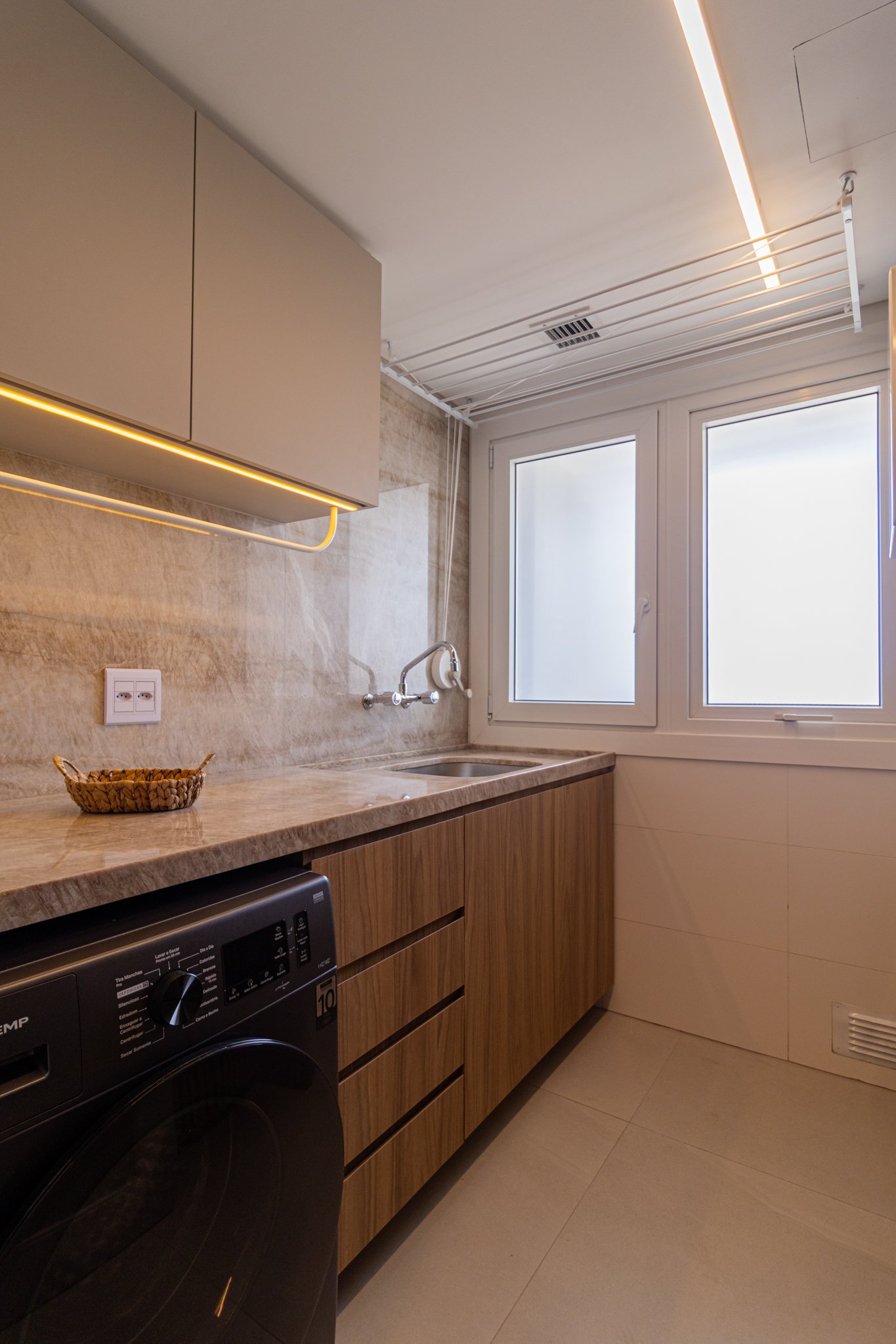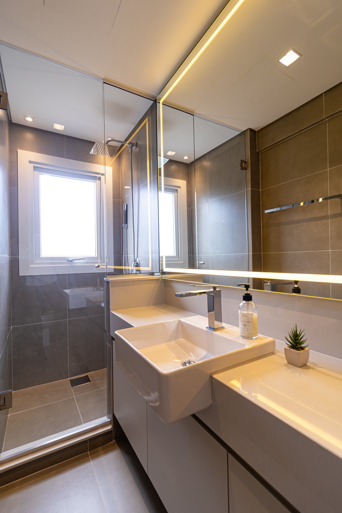 Desde o início, foi priorizada uma atmosfera clean, funcional e atemporal, características cada vez mais valorizadas em apartamentos de alto padrão.