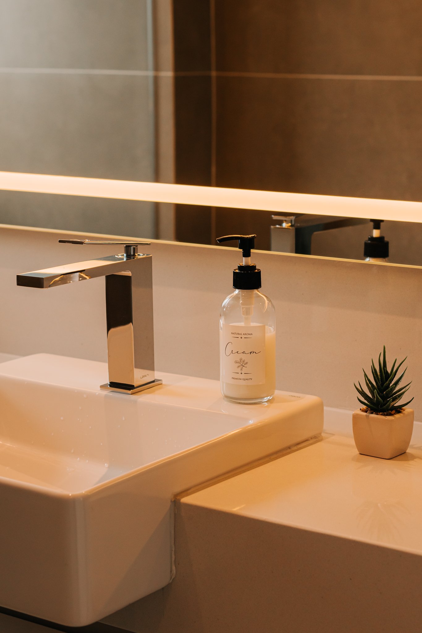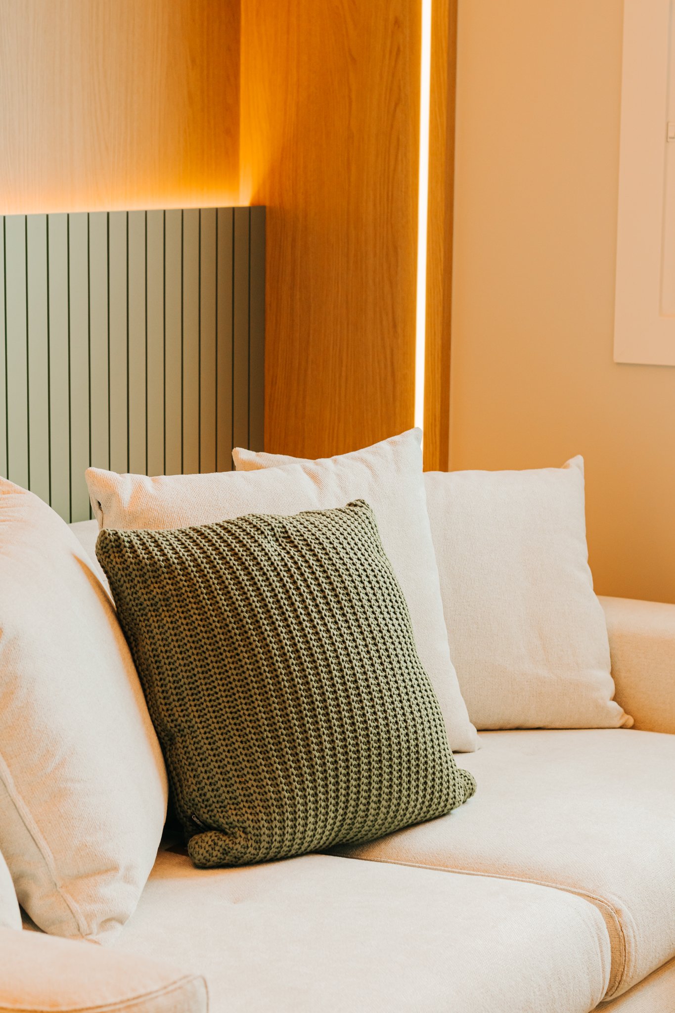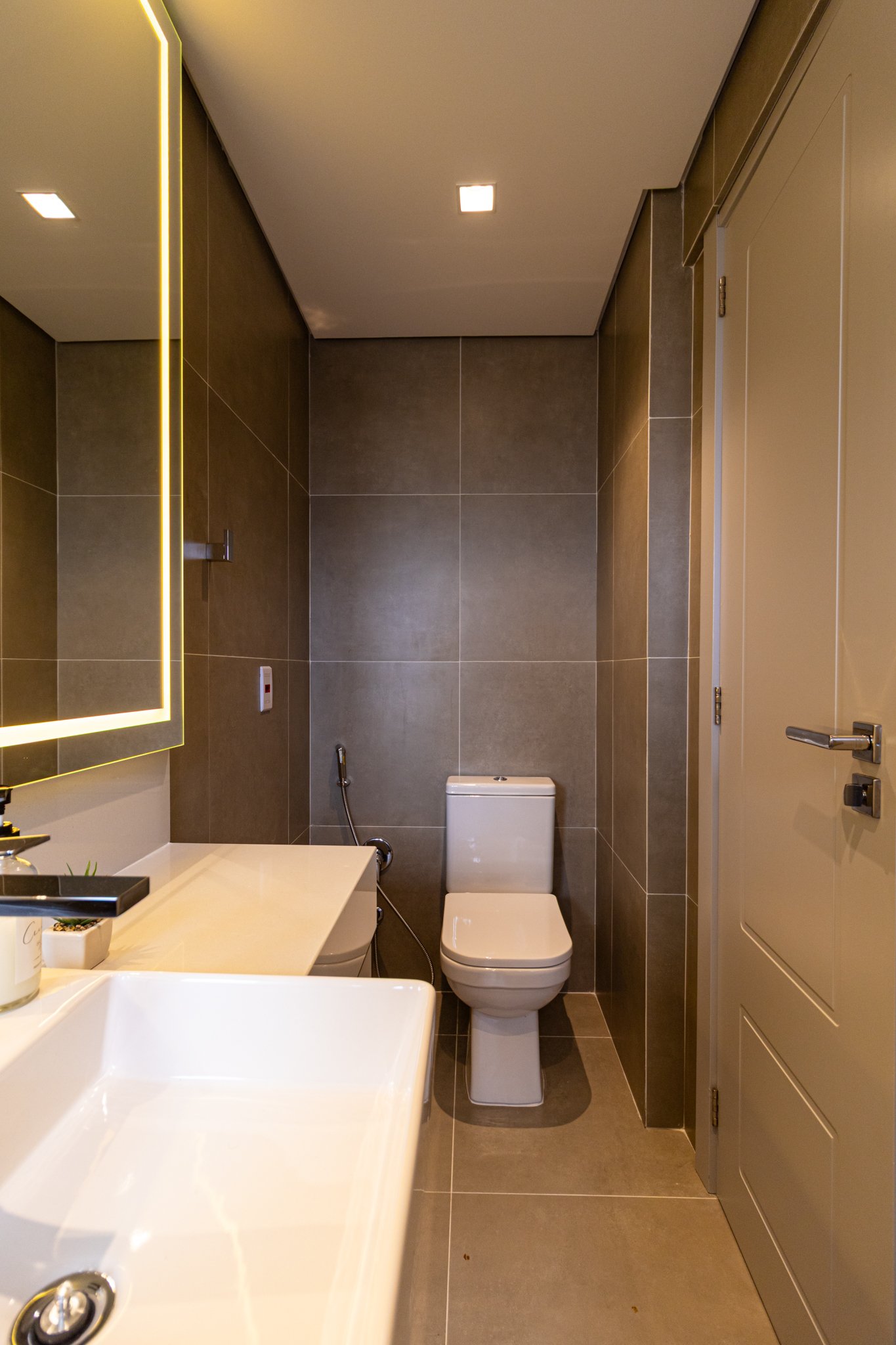 Por fim, a iluminação arquitetônica foi cuidadosamente definida para que uma luz suave e agradável fosse garantida. Assim, os ambientes passaram a contar com uma iluminação que não ofusca os olhos e que, ao mesmo tempo, valoriza a decoração clean desejada pelos moradores, reforçando o conceito de conforto e bem-estar em todo o apartamento.