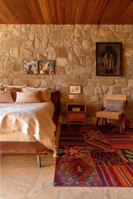 - Rustico Chic: Explore suítes master com uma abordagem rústica e elegante. Combinações de madeira natural, pedra, couro, tons terrosos, e contraste com tecidos e iluminação mais aconchegantes. Detalhes artesanais criam uma atmosfera ainda mais acolhedora.