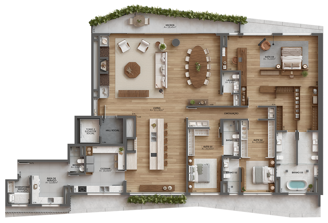 •Apartamentos de alto padrão com plantas generosas
